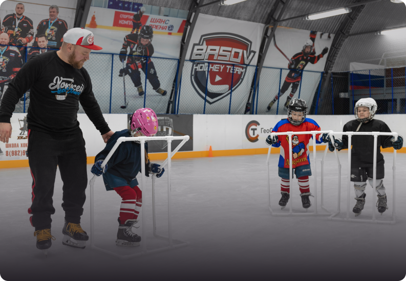 BASOV HOCKEY TEAM — это всероссийская сеть мобильных катков, школ начальной подготовки по хоккею. Основной задачей является профессиональное становление на коньки подрастающего поколения.